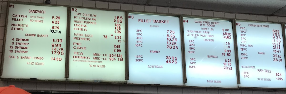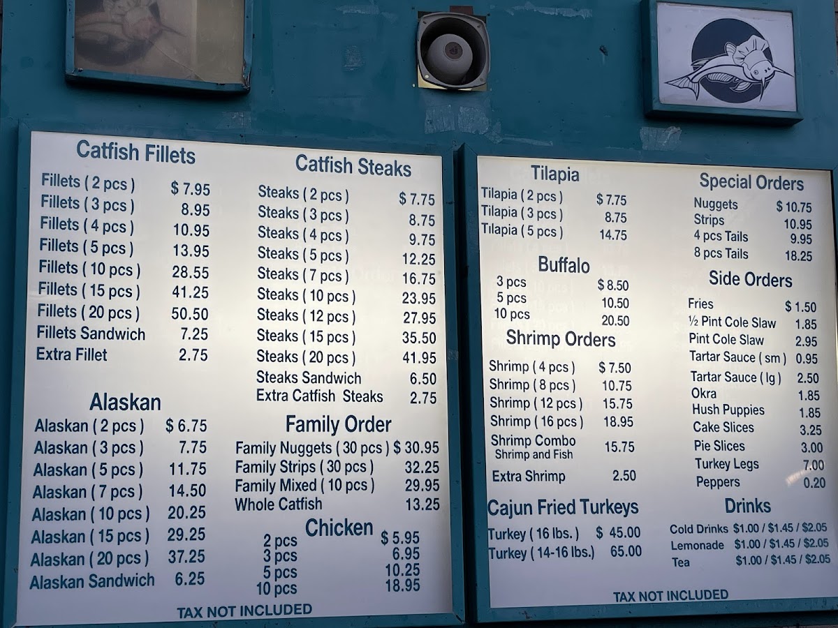 You’ll find options like crispy catfish fillets, sandwich-style Alaskan perch, seasoned catfish strips with fries, and traditional sides such as hush puppies and coleslaw. The menu also features flavorful accompaniments like spicy tartar sauce that bring an extra touch of Cajun flair without overwhelming the simplicity of the meals.
