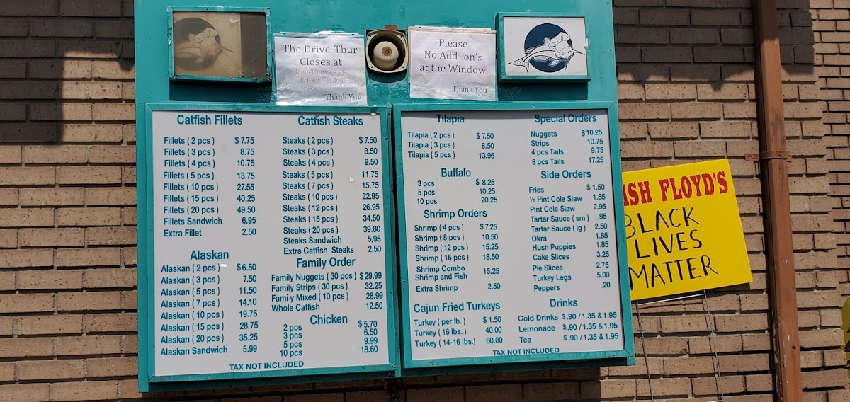 Catfish Floyd's offers a straightforward, no-frills menu that focuses on hearty, familiar seafood dishes served in a casual fast-food setting. The menu leans into classic Southern flavors and comforting bites, perfect for a quick lunch, a relaxed dinner, or a satisfying snack on the go.